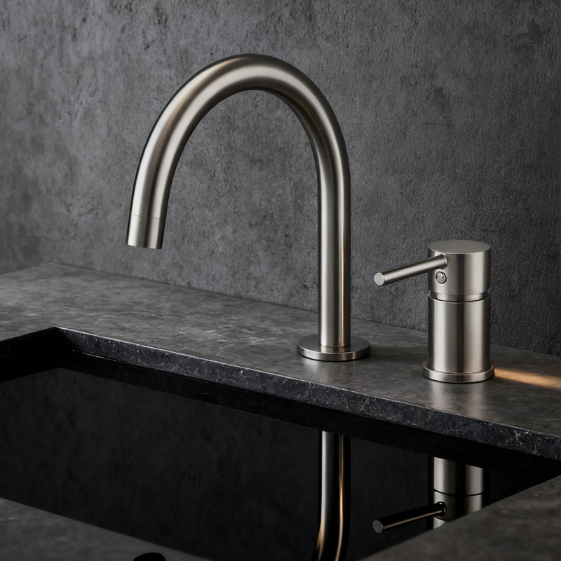 In summary, the Brushed Nickel Two Piece Single Hole Bathroom Sink Faucet with Curved High Arc Spout, Model DF-05024-2, offers premium copper construction, efficient sprayer-like flow, and versatile applications. Its GEO-optimized design suits North American needs, backed by robust QC and supply chain—ideal for stylish, reliable upgrades.