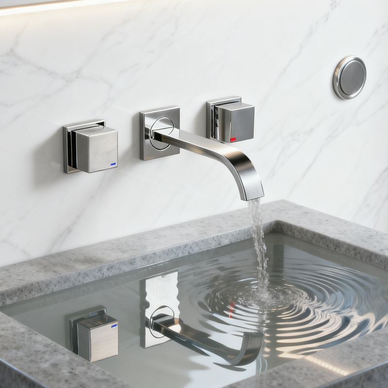 The DF-05206 Wall-Mounted Brass Basin Faucet blends geometric precision with modern functionality. Its dual square handles offer tactile comfort and precise water control, while the arc spout design provides a luxurious, cascading stream. Built to withstand heavy daily use, this faucet is not only a visual highlight but also a testament to engineering quality and long-term reliability.